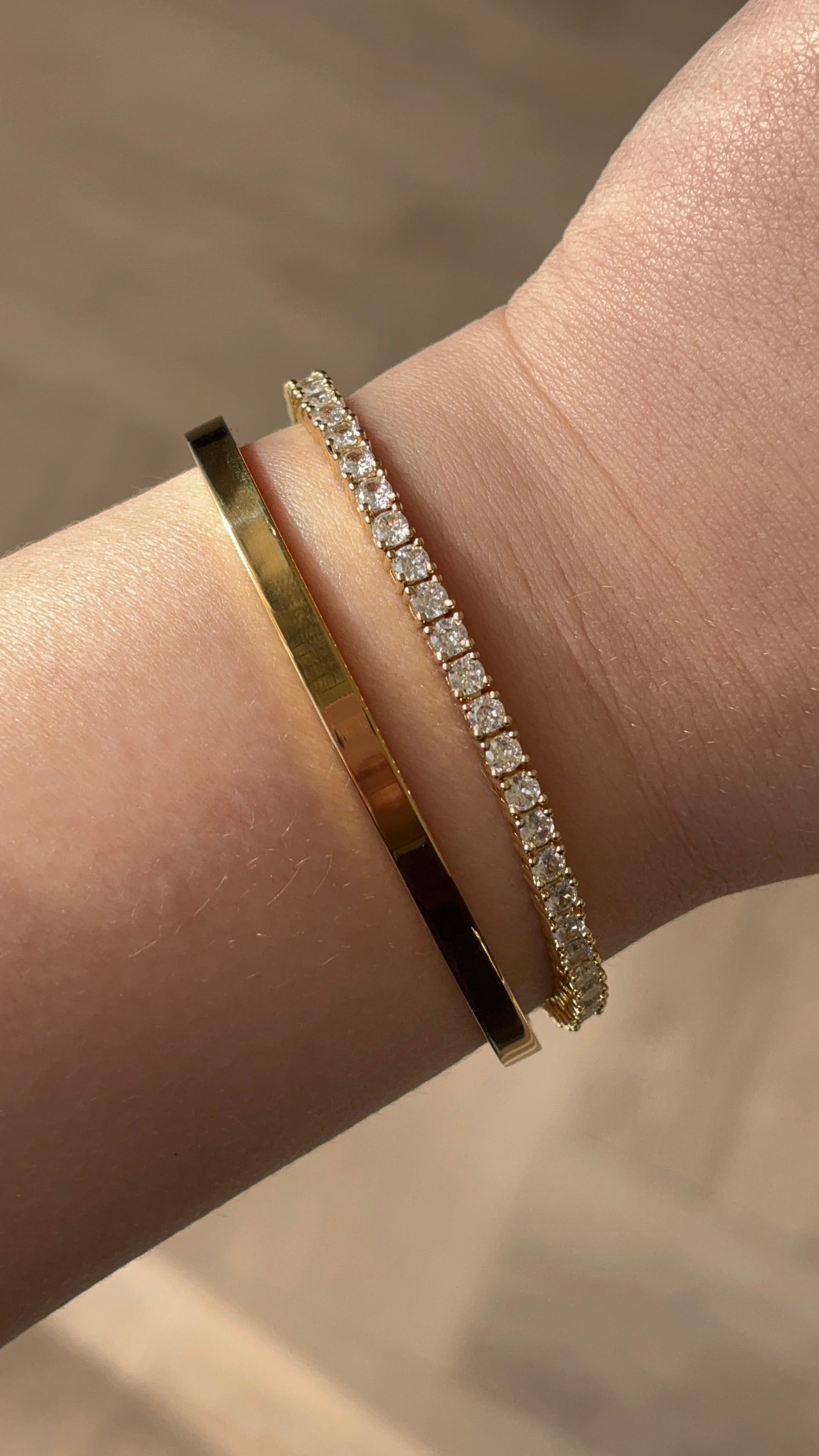 The Céleste Bangle is a timeless piece designed to add effortless elegance to your jewellery collection. Featuring a sleek and minimal design with a refined gold finish, this bracelet offers a sophisticated look that never goes out of style.